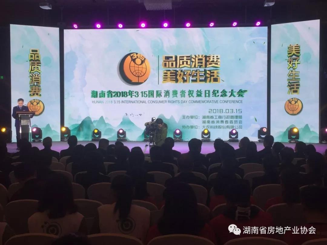 “品質(zhì)消費 美好生活”,今天上午,湖南省2018年3·15國際消費者權(quán)益日紀(jì)念大會在長沙召開。湖南省房地產(chǎn)業(yè)協(xié)會等10家行業(yè)協(xié)會被設(shè)立為消費者投訴站。