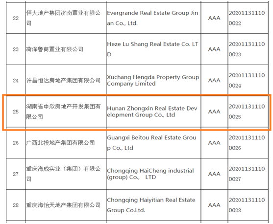 根據(jù)中房協(xié)《關(guān)于開展2020年房地產(chǎn)行業(yè)(開發(fā)企業(yè))信用評價工作的通知》要求,湖南省房地產(chǎn)業(yè)協(xié)會積極組織我省會員單位參加中房協(xié)的信用評價測評。經(jīng)第三方信用評價機構(gòu)評價、信用建設(shè)專家委員會審議、信用建設(shè)管理委員會審定,2020年12月1日,中房協(xié)發(fā)布《關(guān)于公布2020年房地產(chǎn)開發(fā)企業(yè)信用評價結(jié)果的決定》,我會會員單位湖南省中欣房地產(chǎn)開發(fā)集團有限公司、恒大地產(chǎn)集團長沙置業(yè)有限公司獲評為信用等級AAA企業(yè)。