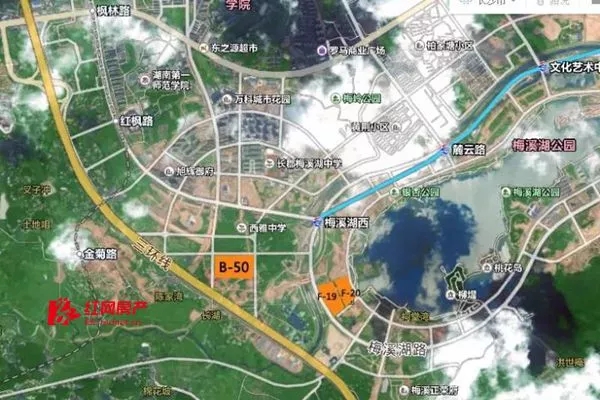東臨環(huán)湖路,北臨近湖十路,西臨梅溪湖路,南臨近湖九路的F-19和F-20地塊,規(guī)劃用途均為商業(yè)、住宅用地。
