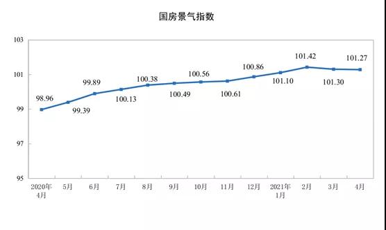 4月份,房地產(chǎn)開發(fā)景氣指數(shù)(簡(jiǎn)稱“國(guó)房景氣指數(shù)”)為101.27。
