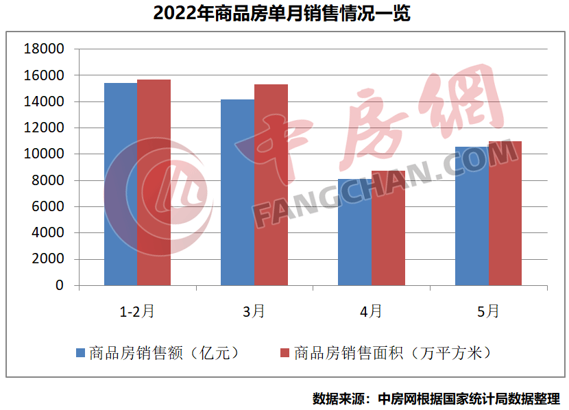 數(shù)據(jù)顯示,1-5月份,商品房銷(xiāo)售面積50738萬(wàn)平方米,同比下降23.6%;其中,住宅銷(xiāo)售面積下降28.1%。商品房銷(xiāo)售額48337億元,下降31.5%;其中,住宅銷(xiāo)售額下降34.5%。