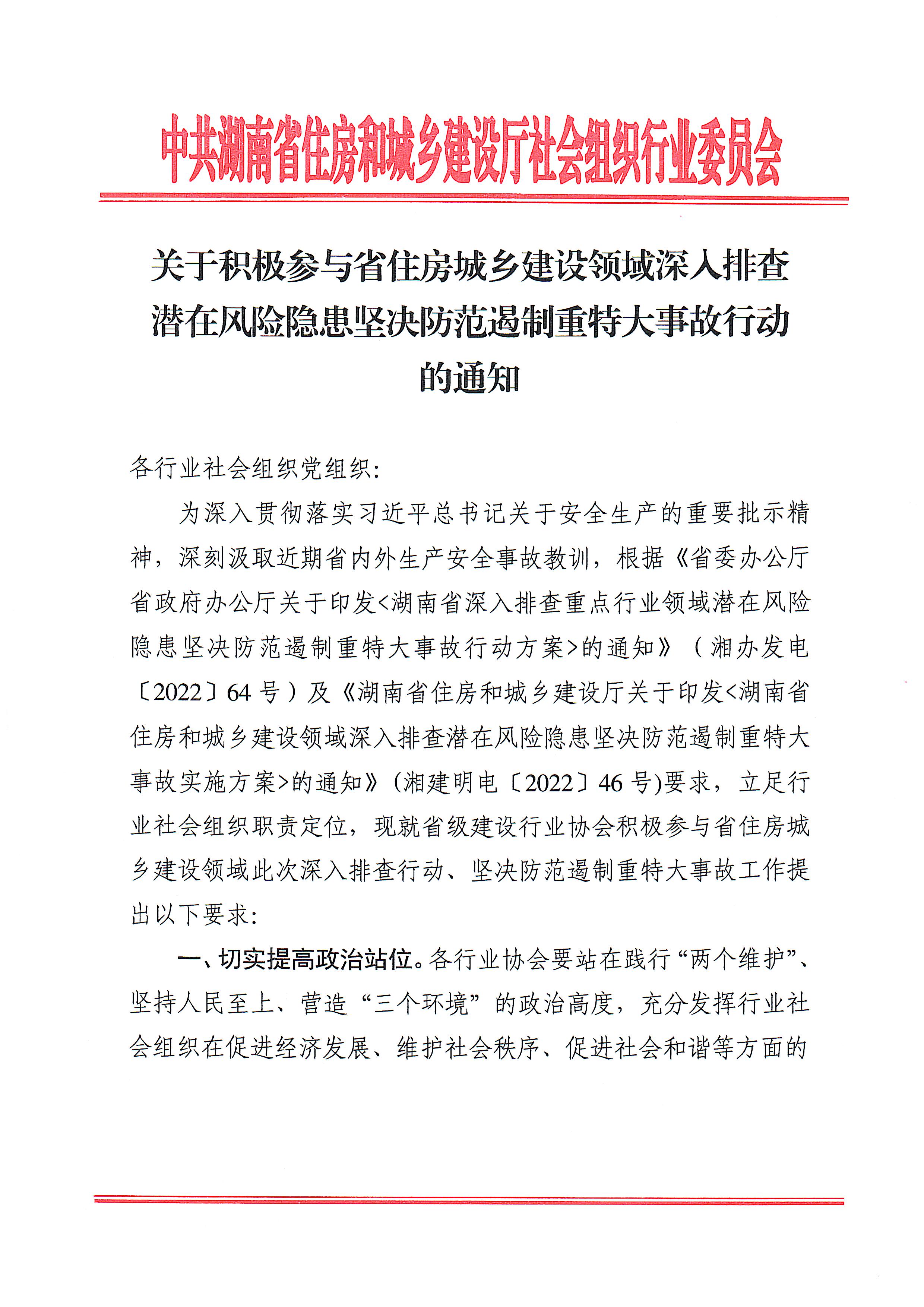 關(guān)于積極參與省住房城鄉(xiāng)建設(shè)領(lǐng)域深入排查潛在風(fēng)險(xiǎn)隱患堅(jiān)決防范遏制重特大事故行動(dòng)的通知
