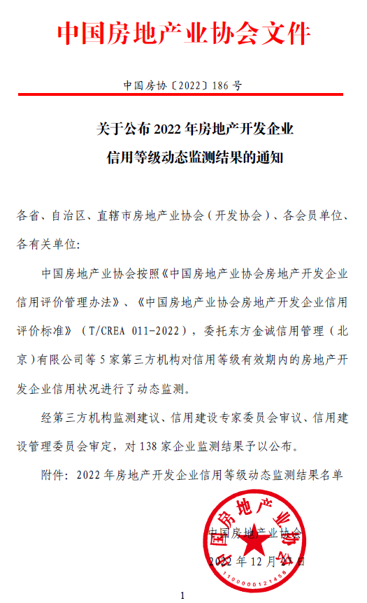喜訊 | 省房協(xié)推薦的會(huì)員房企榮獲2022年全國(guó)信用評(píng)價(jià)AAA等級(jí)
