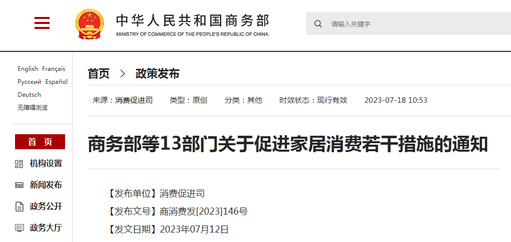 13部門聯(lián)合發(fā)文促進(jìn)家居消費(fèi)恢復(fù)升級(jí)