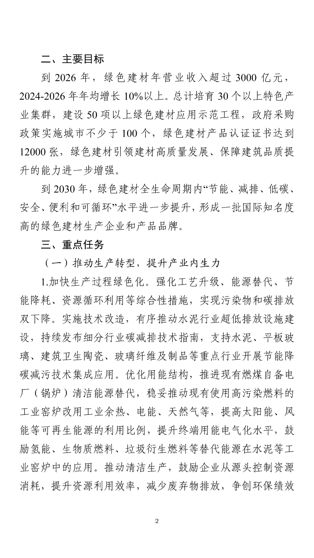 《方案》提出,到2026年,綠色建材年?duì)I業(yè)收入超過3000億元,2024-2026年年均增長10%以上??傆?jì)培育30個以上特色產(chǎn)業(yè)集群,建設(shè)50項(xiàng)以上綠色建材應(yīng)用示范工程,政府采購政策實(shí)施城市不少于100個,綠色建材產(chǎn)品認(rèn)證證書達(dá)到12000張,綠色建材引領(lǐng)建材高質(zhì)量發(fā)展、保障建筑品質(zhì)提升的能力進(jìn)一步增強(qiáng)。