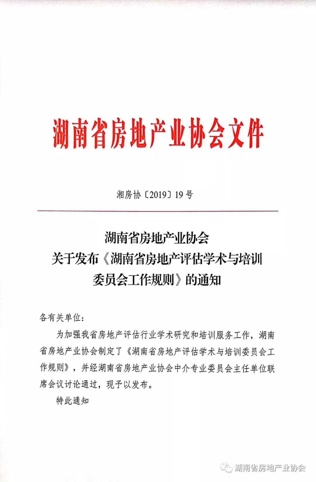 關于發(fā)布《湖南省房地產評估學術與培訓委員會工作規(guī)則》的通知