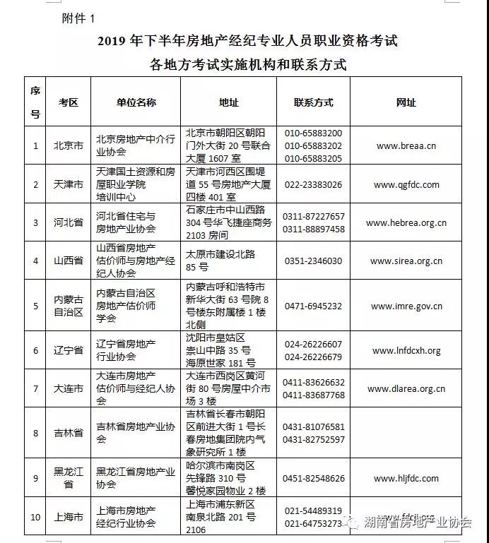 附件:1.2019年下半年房地產(chǎn)經(jīng)紀(jì)專業(yè)人員職業(yè)資格考試各地方考試實(shí)施機(jī)構(gòu)和聯(lián)系方式