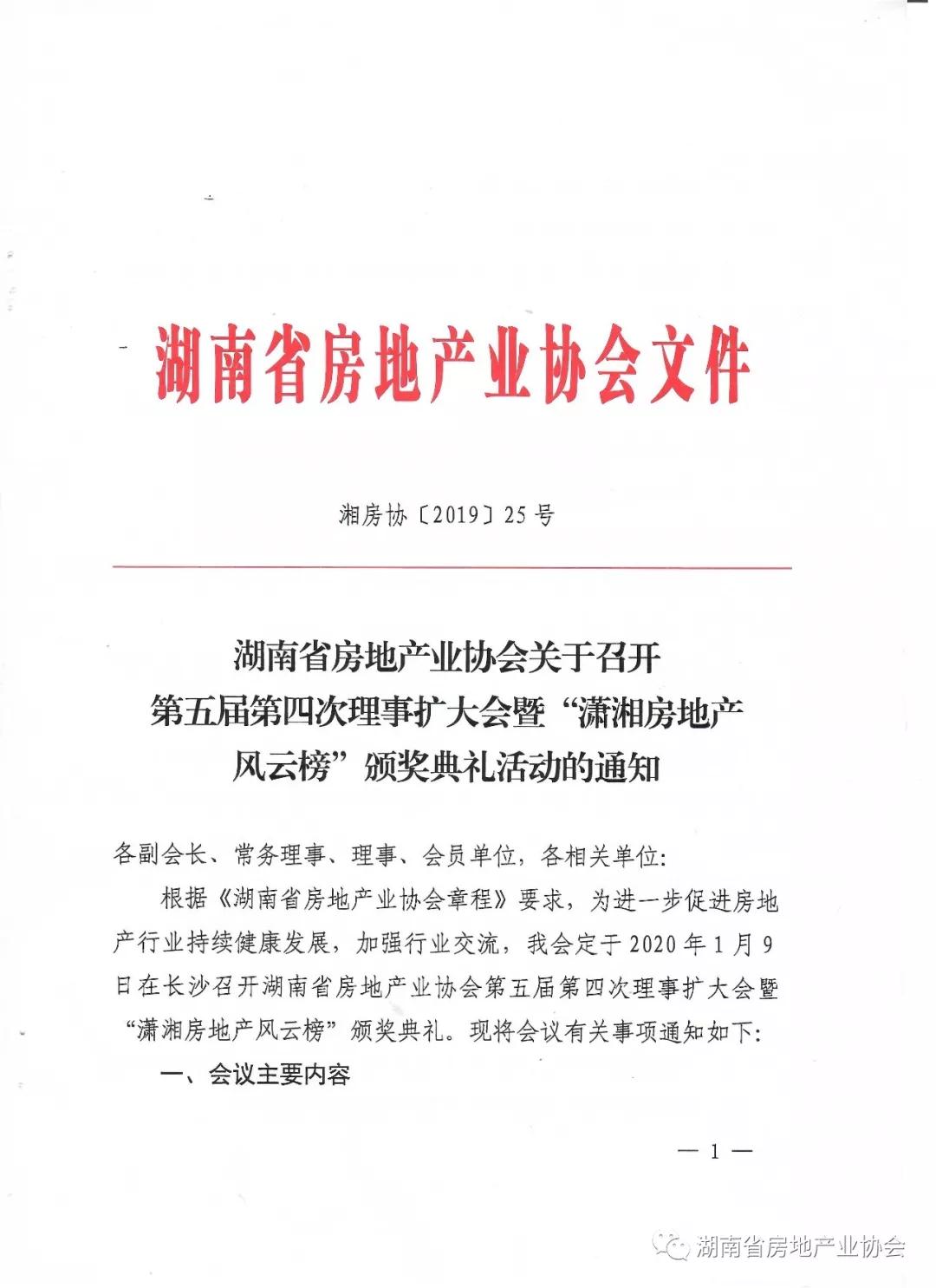 關(guān)于召開 第五屆第四次理事擴(kuò)大會(huì)暨“瀟湘房地產(chǎn) 風(fēng)云榜”頒獎(jiǎng)典禮活動(dòng)的通知
