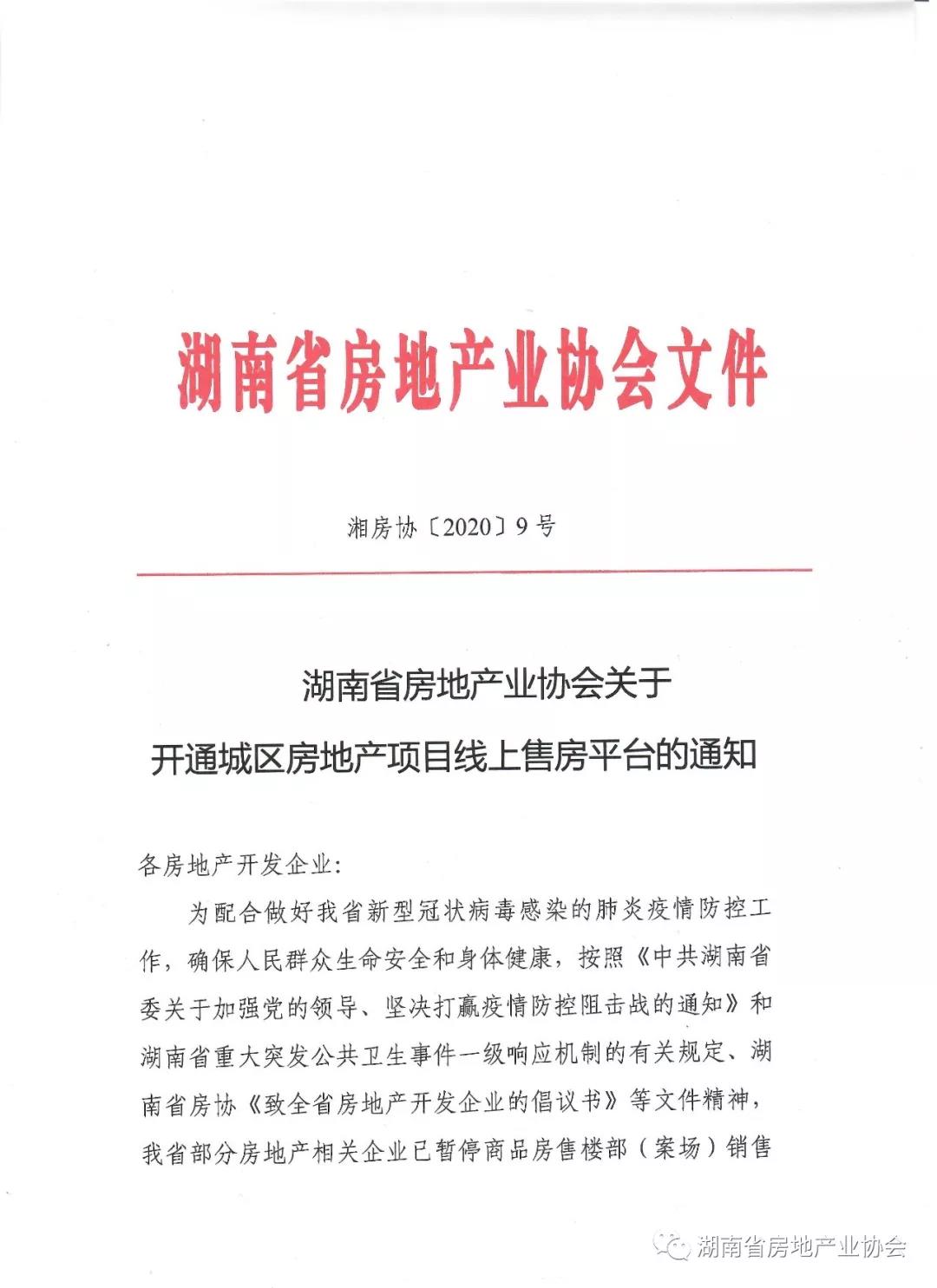 湖南省房地產(chǎn)業(yè)協(xié)會關于開通城區(qū)房地產(chǎn)項目線上售房平臺的通知