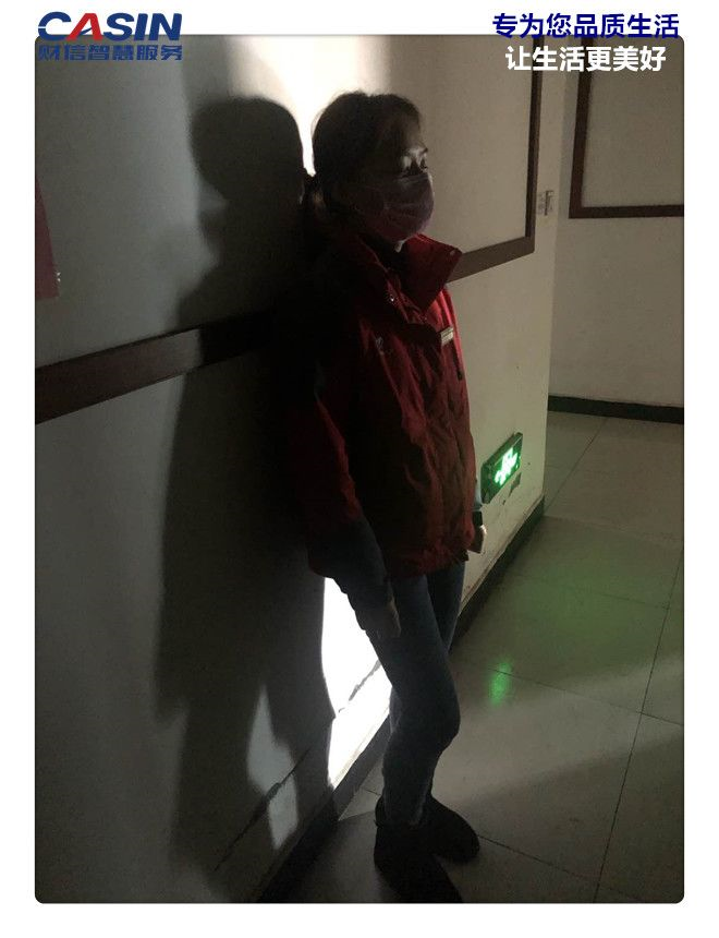 ___客服小姐姐疫情巡查、走訪累了,一天下來骨頭都散了,腿也僵了,倚靠著消防樓道墻小憩一會(huì)。