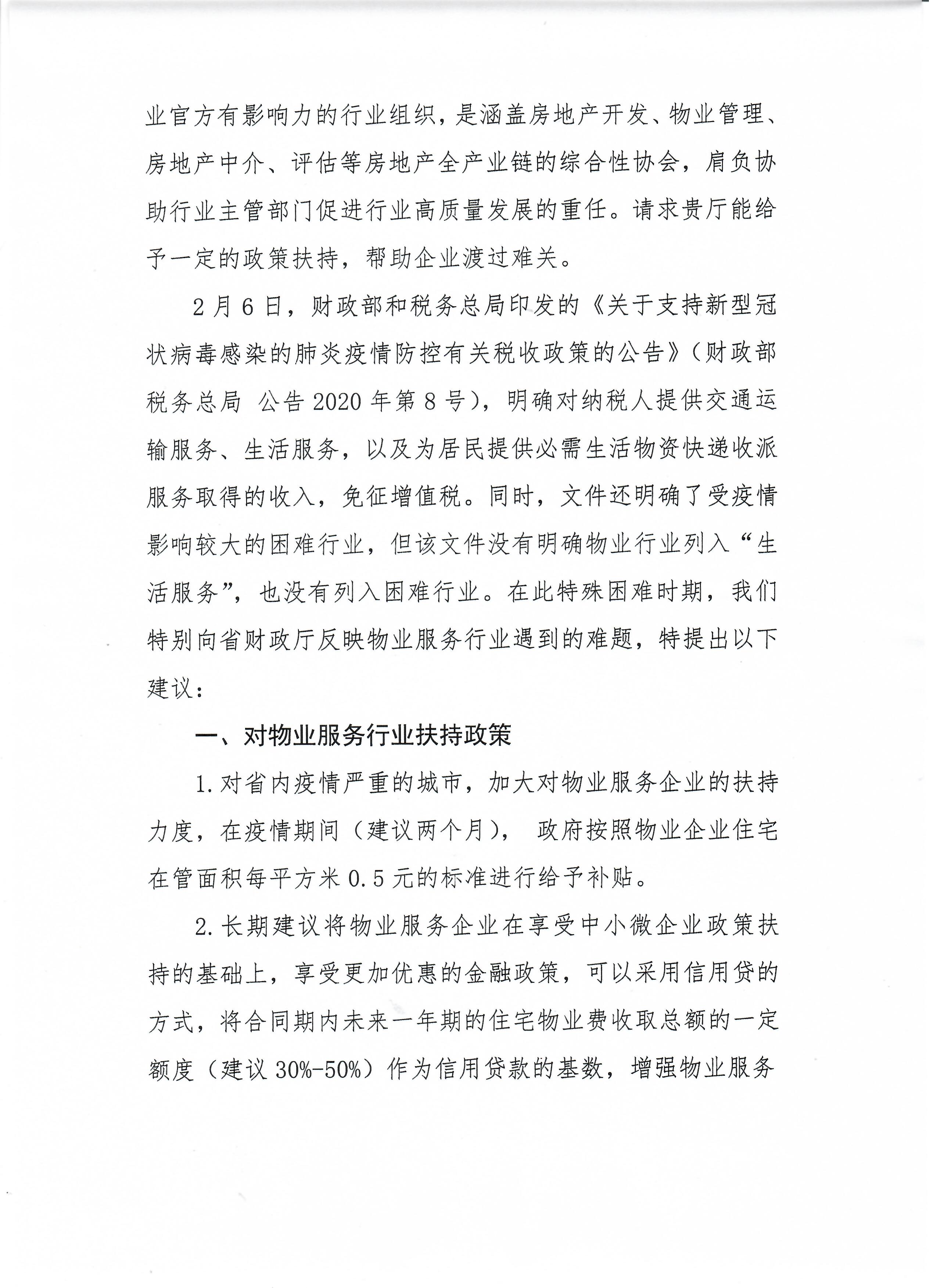 2月17日我會針對開發(fā)、物業(yè)、中介行業(yè)普遍存在的困難,向湖南省財政廳、湖南省稅務局分別提交了《關于申請對房地產(chǎn)開發(fā)企業(yè)和物業(yè)服務企業(yè)進行專項補貼的報告》(以下簡稱“報告”),為行業(yè)爭取扶持政策,渡過難關。省住建廳領導非常重視,廳長及分管副廳長親自指導過問“報告”起草工作,省廳房產(chǎn)處與省財政、省稅務局、省發(fā)改委相關處室、部門多次對接,介紹行業(yè)存在的困難,介紹其他省份已經(jīng)出臺的幫扶政策,積極爭取政策幫助。
