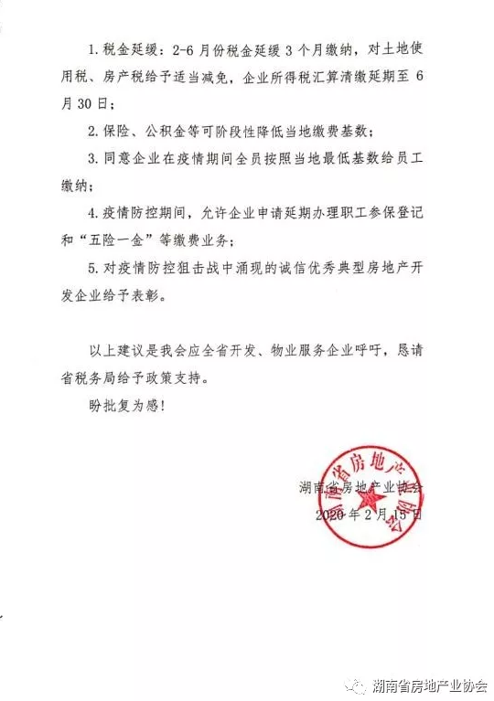 湖南省房地產(chǎn)業(yè)協(xié)會作為起草發(fā)起單位,廣泛調(diào)研廣大會員企業(yè)存在的困難,搜集全國已出臺了扶持政策的省、市相關政策文件,我會還結合行業(yè)和企業(yè)實際情況,第一時間擬定了“政策建議報告”。將相關情況向省住建廳領導報告,并積極向省發(fā)改委、省財政、省稅務局報告我省物業(yè)行業(yè)、開發(fā)行業(yè)遇到的一系列困難,存在的發(fā)展問題,讓行業(yè)困難得到更高的重視。報告也多次修改確保報告提出的建議切合湖南房企實際,也有充實的事例和相關依據(jù),爭取盡快被采納,幫助企業(yè)發(fā)展。
