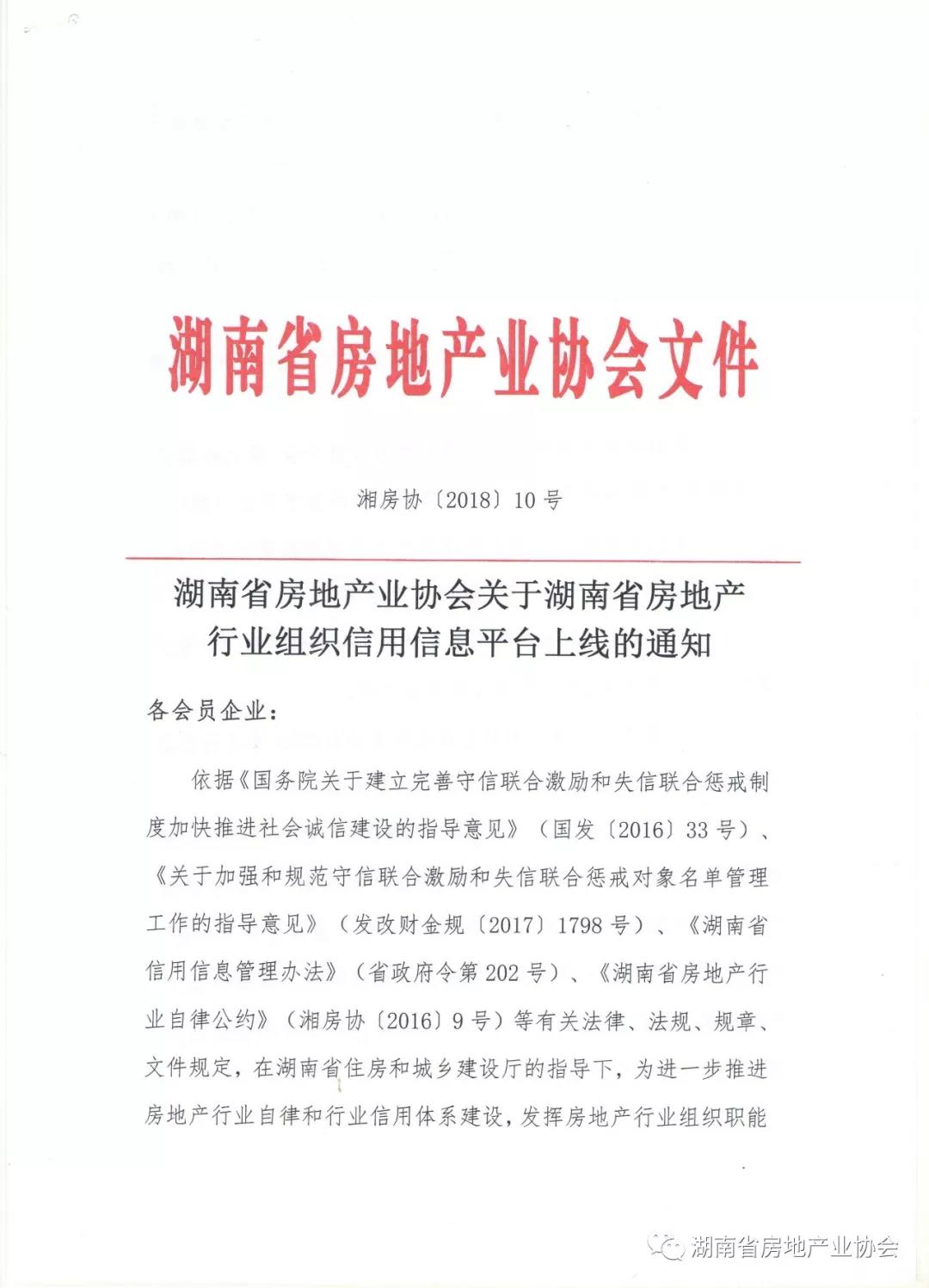 關(guān)于湖南省房地產(chǎn)行業(yè)組織信用信息平臺(tái)上線的通知