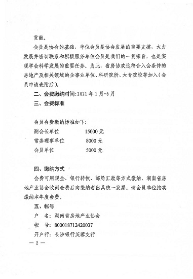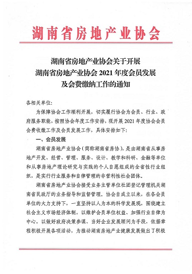關(guān)于開展湖南省房地產(chǎn)業(yè)協(xié)會2021年度會員發(fā)展及會費(fèi)繳納工作的通知