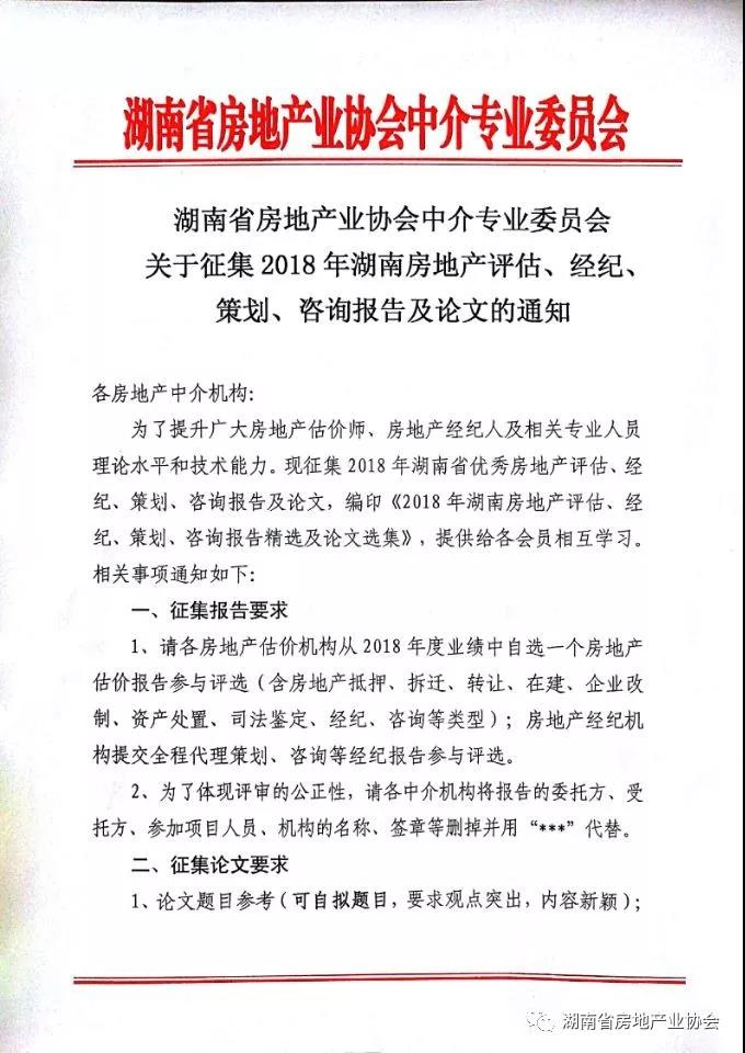 關(guān)于征集2018年湖南房地產(chǎn)評(píng)估、經(jīng)紀(jì)、 策劃、咨詢報(bào)告及論文的通知