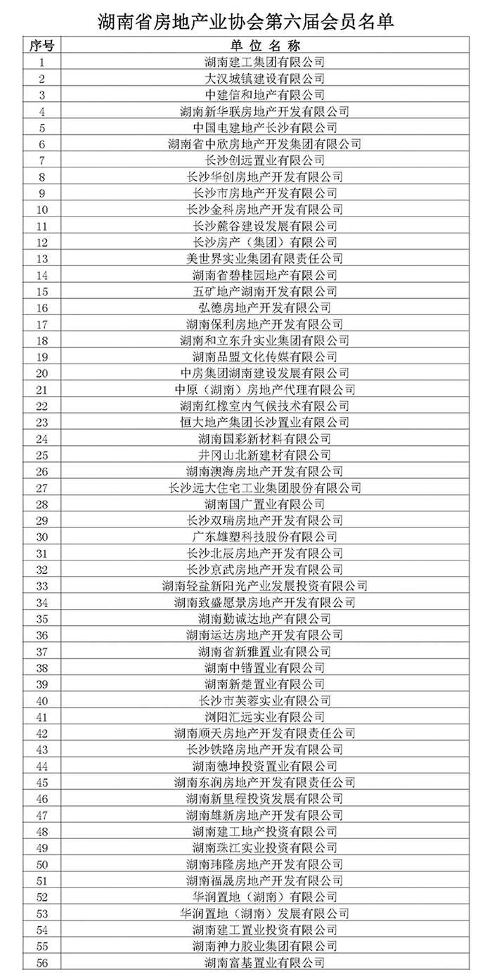 湖南省房地產(chǎn)業(yè)協(xié)會(huì)第六屆會(huì)員名單公示