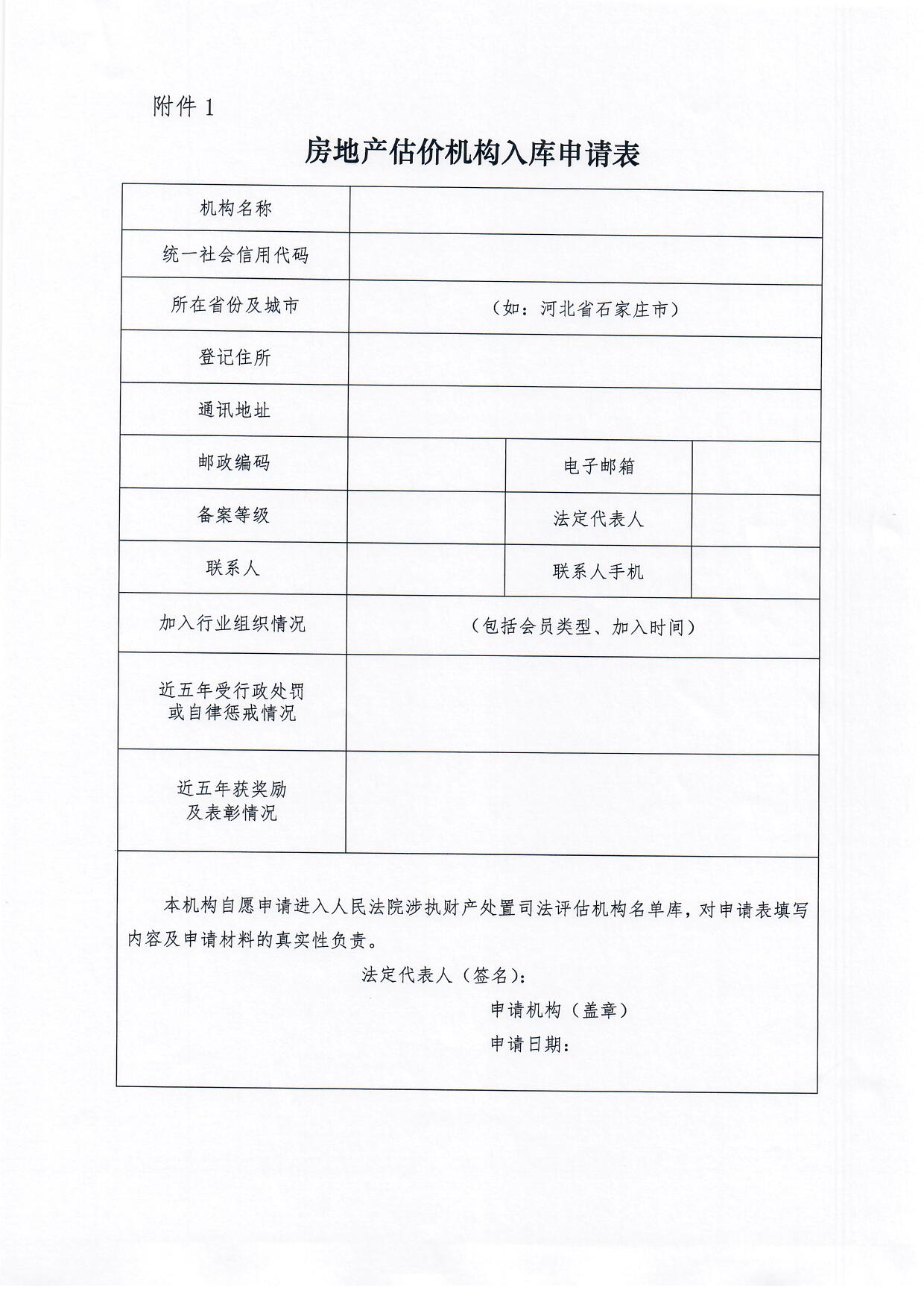 1.房地產(chǎn)估價機(jī)構(gòu)入庫申請表(附件1);