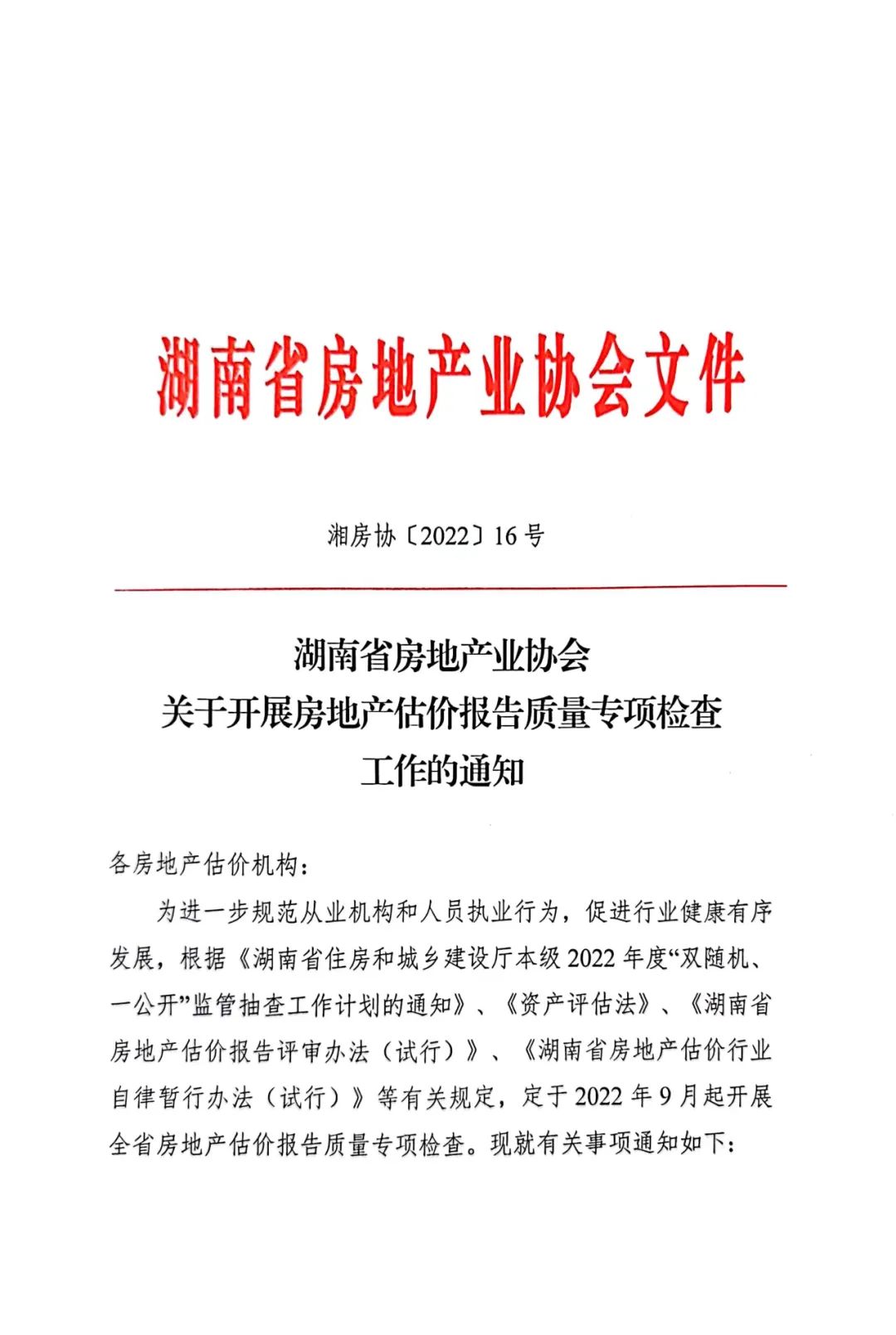為進(jìn)一步規(guī)范從業(yè)機(jī)構(gòu)和人員執(zhí)業(yè)行為,促進(jìn)行業(yè)健康有序發(fā)展,根據(jù)《湖南省住房和城鄉(xiāng)建設(shè)廳本級(jí)2022年度“雙隨機(jī)、一公開(kāi)”監(jiān)管抽查工作計(jì)劃的通知》、《資產(chǎn)評(píng)估法》、《湖南省房地產(chǎn)估價(jià)報(bào)告評(píng)審辦法(試行)》、《湖南省房地產(chǎn)估價(jià)行業(yè)自律暫行辦法(試行)》等有關(guān)規(guī)定,定于2022年9月起開(kāi)展全省房地產(chǎn)估價(jià)報(bào)告質(zhì)量專項(xiàng)檢查。現(xiàn)就有關(guān)事項(xiàng)通知如下: