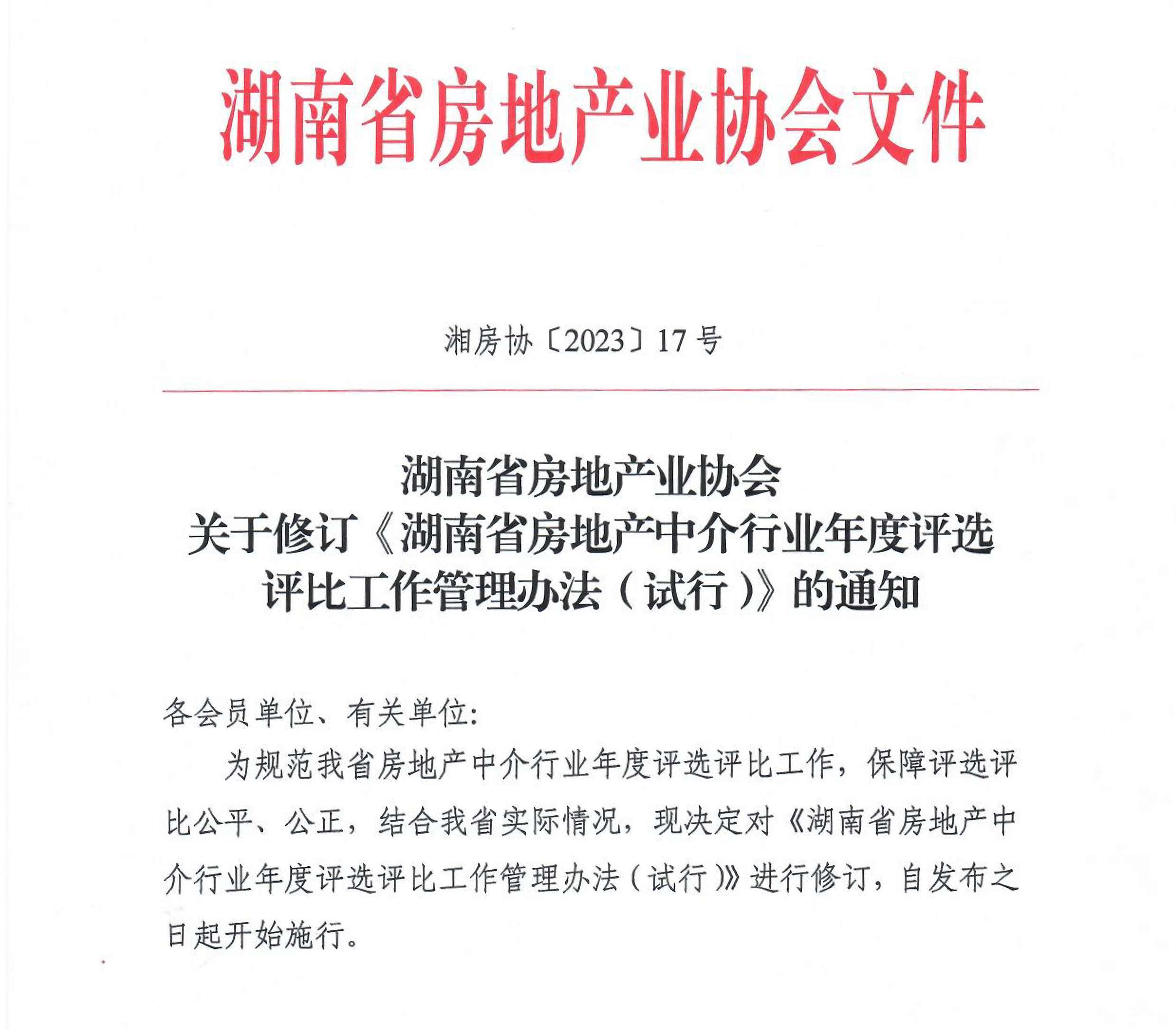 關(guān)于修訂《湖南省房地產(chǎn)中介行業(yè)年度評選評比工作管理辦法(試行)》的通知