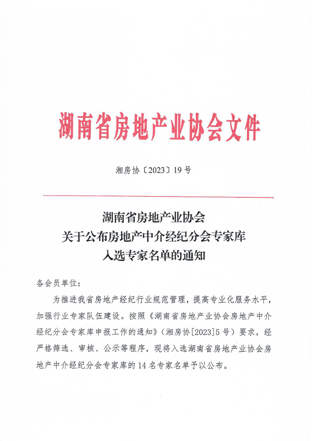關(guān)于公布房地產(chǎn)中介經(jīng)紀(jì)分會專家?guī)烊脒x專家名單的通知