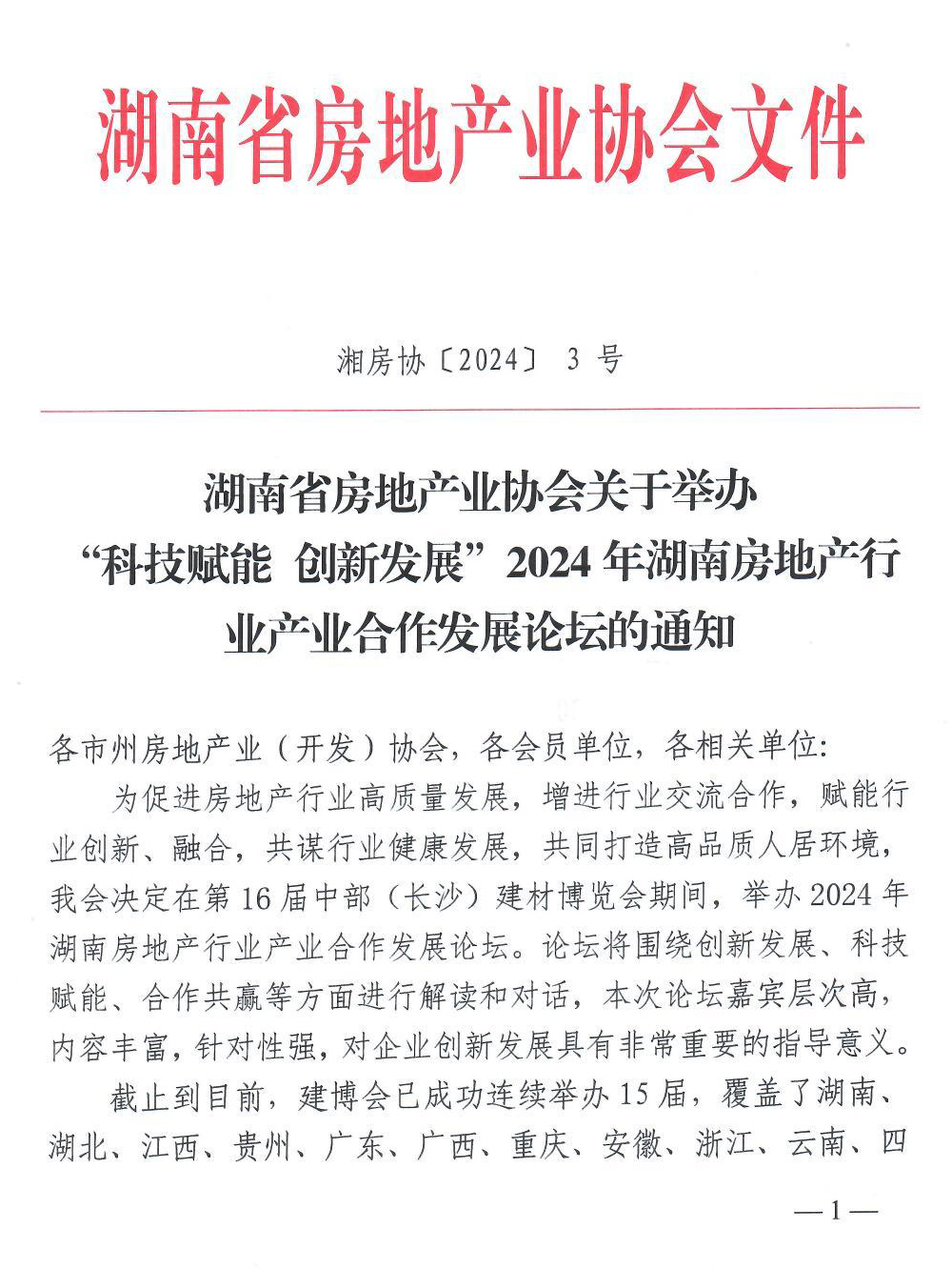 關(guān)于舉辦“科技賦能 創(chuàng)新發(fā)展”2024年湖南房地產(chǎn)行業(yè)產(chǎn)業(yè)合作發(fā)展論壇的通知
