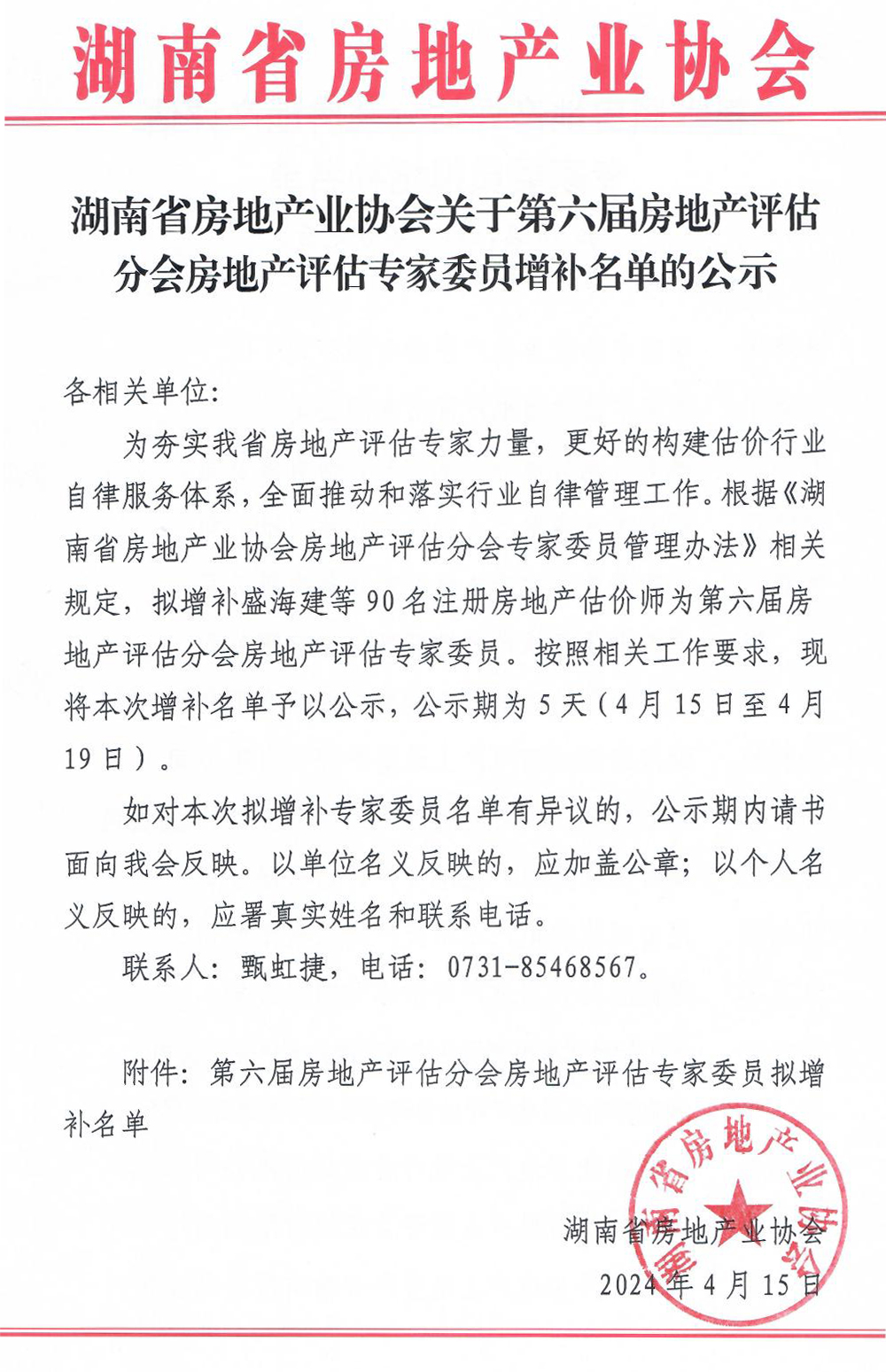 關(guān)于第六屆房地產(chǎn)評估分會房地產(chǎn)評估專家委員增補名單的公示