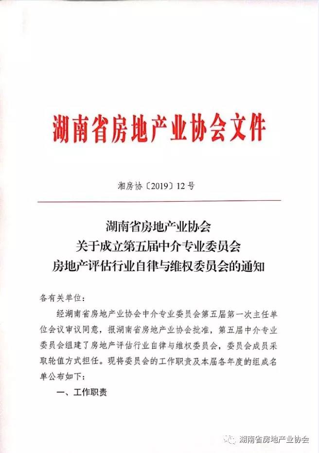 關(guān)于成立第五屆中介專業(yè)委員會房地產(chǎn)評估行業(yè)自律與維權(quán)委員會的通知