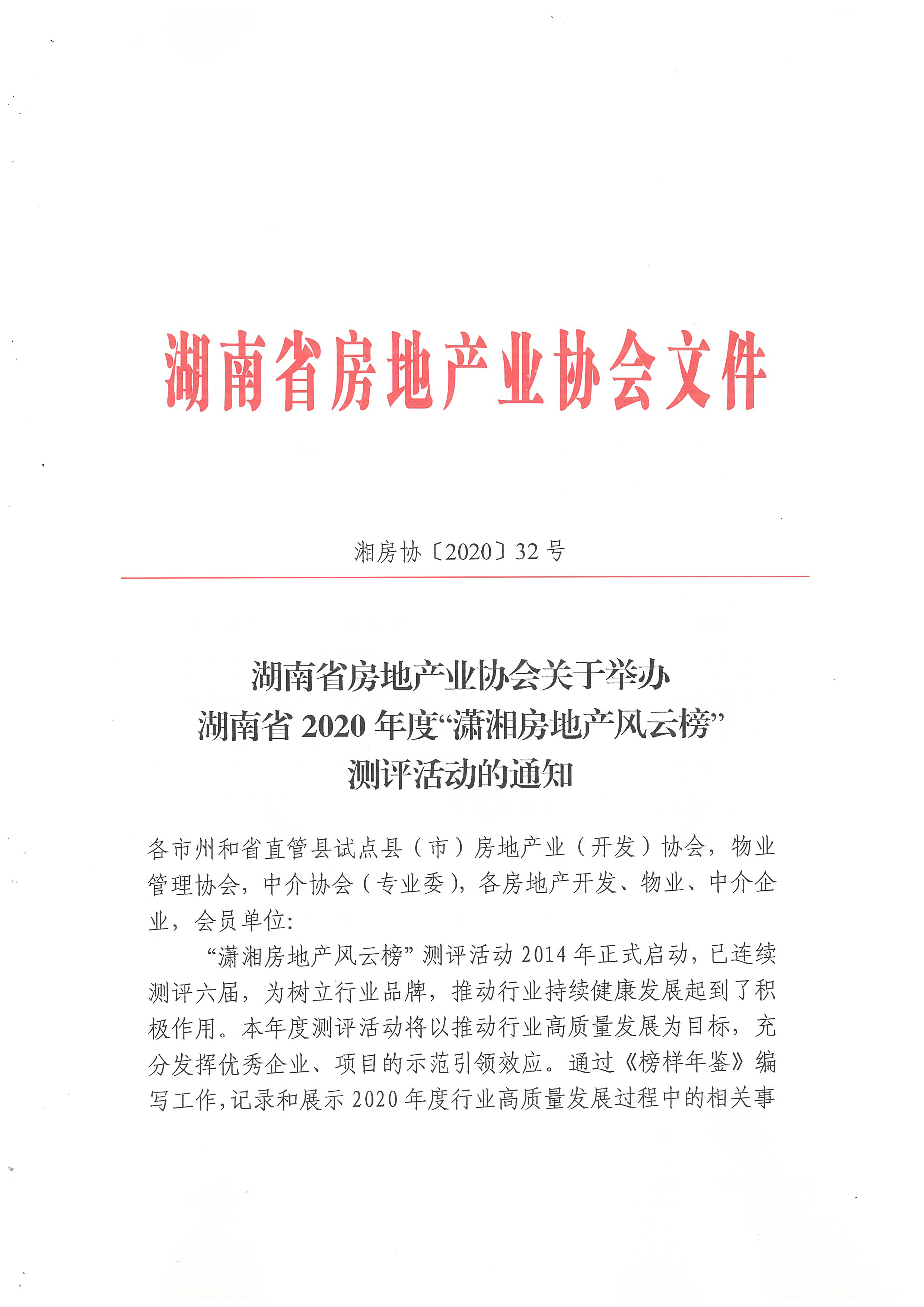 關(guān)于舉辦湖南省2020年度“瀟湘房地產(chǎn)風云榜”測評活動的通知