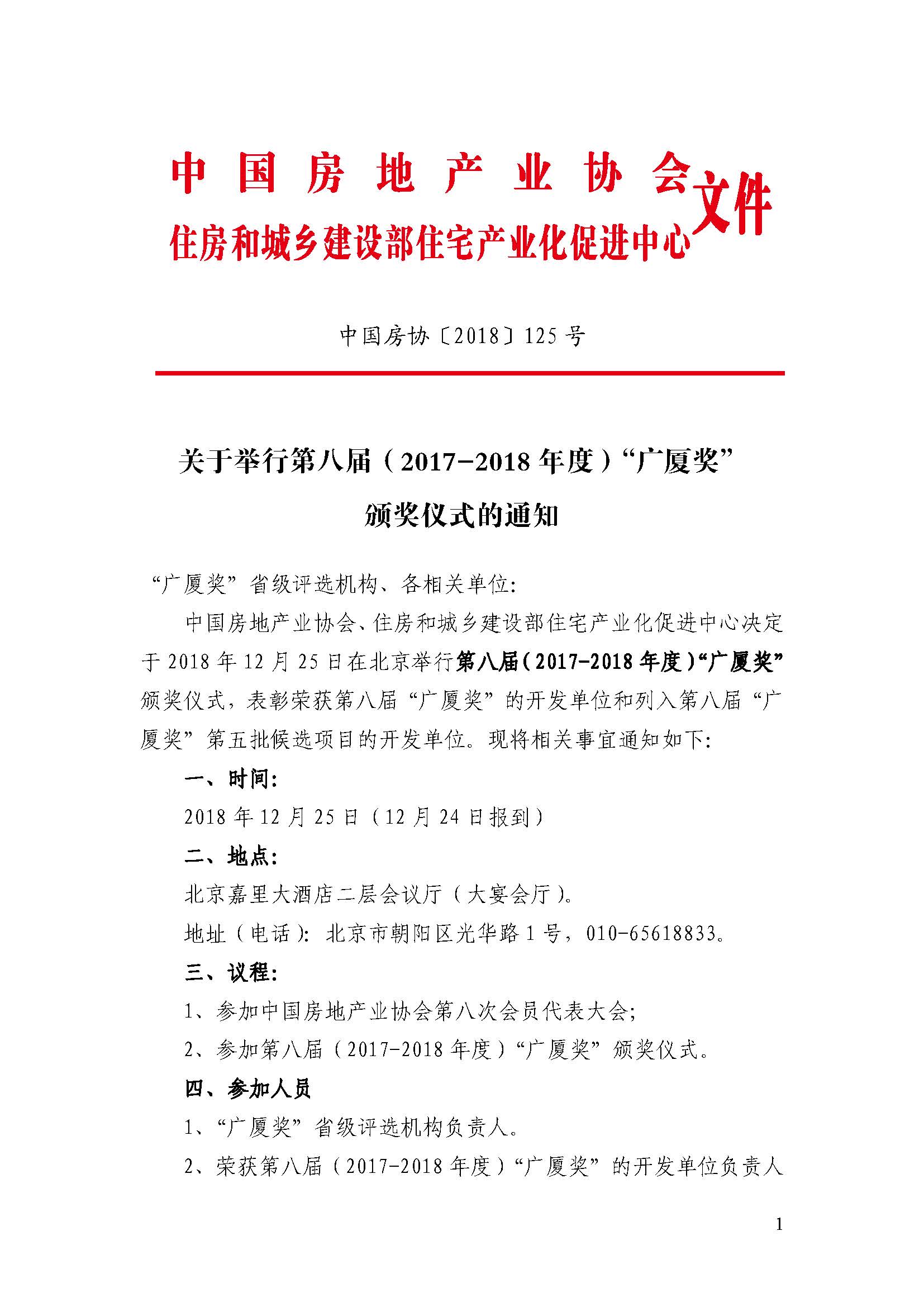關(guān)于舉行第八屆(2017-2018 年度)“廣廈獎” 頒獎儀式的通知