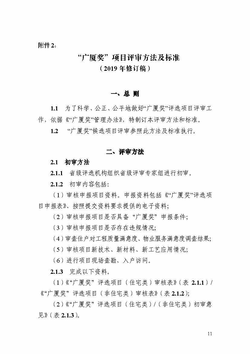 關(guān)于印發(fā)《“廣廈獎”管理辦法》、《“廣廈獎”項目評審方法及標準》(2019 年修訂稿)的通知
