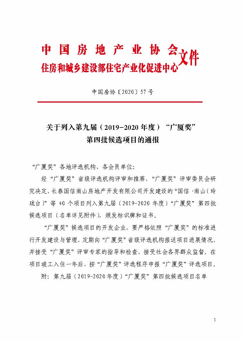 關于列入第九屆(2019-2020 年度)“廣廈獎”第四批候選項目的通報