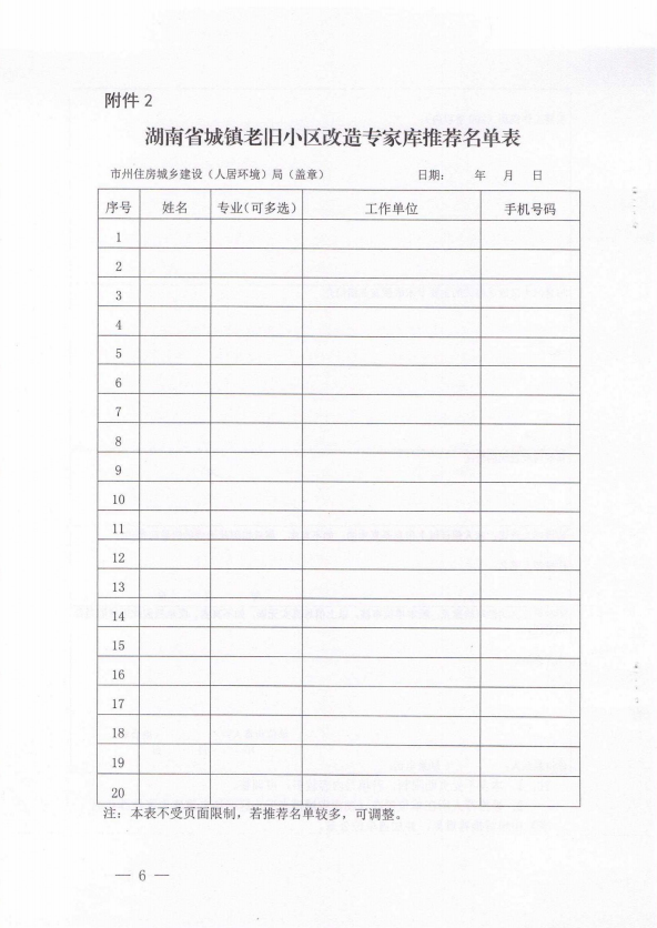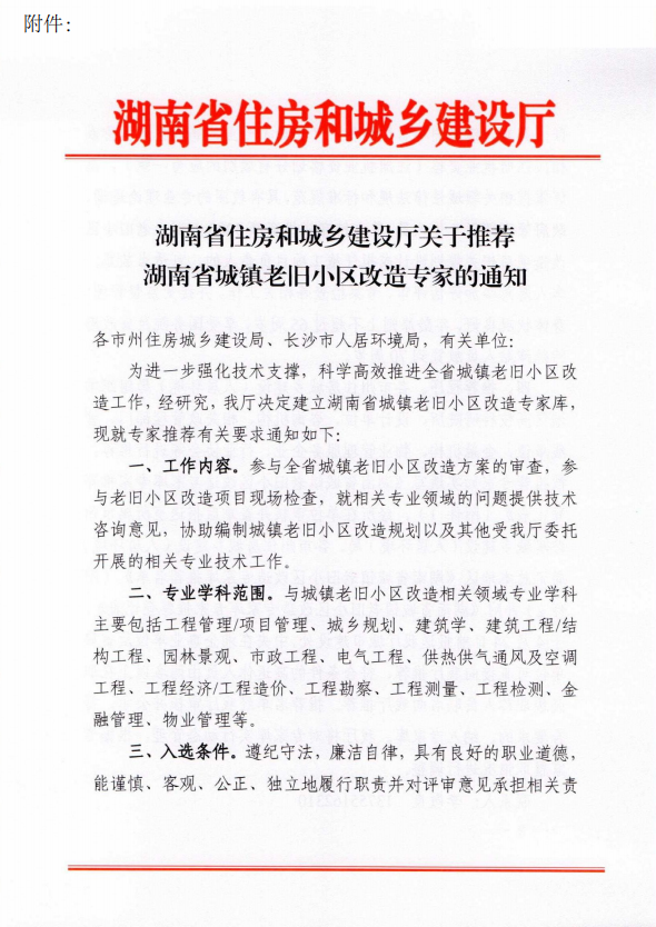 附件:《湖南省住房和城鄉(xiāng)建設廳關于推薦湖南省城鎮(zhèn)老舊小區(qū)改造專家的通知》