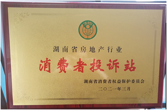 我會被授予湖南省房地產行業(yè)唯一“消費者投訴站” 牌匾
