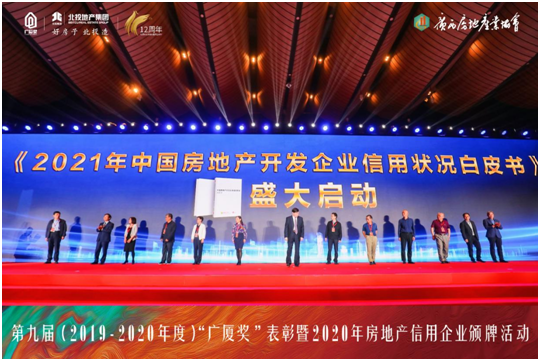 4月8日,在第九屆“廣廈獎”表彰暨2020年房地產(chǎn)信用企業(yè)頒牌活動中,中國房地產(chǎn)業(yè)協(xié)會首次發(fā)布《2020年中國房地產(chǎn)開發(fā)企業(yè)信用狀況白皮書》,并宣讀了《關(guān)于公布2020年房地產(chǎn)開發(fā)企業(yè)信用評價結(jié)果的決定》。